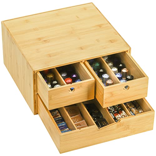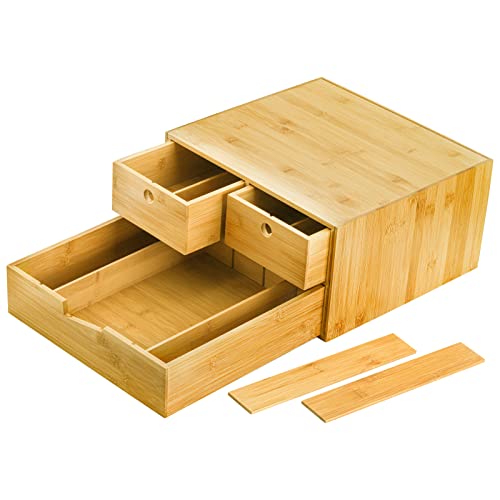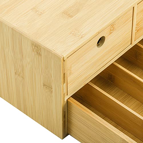 SOUJOY - درج منظم من الخيزران لكبسولات القهوة، حامل كبسولات كيه كاب من طبقتين للطاولة، صندوق تخزين أكياس الشاي من 9 فواصل للمطبخ والمكتب وغرف الاستراحة والمقهى من سوجوي