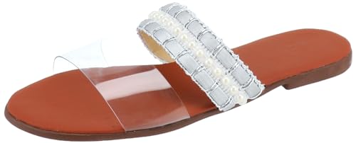 LKOER - سول 2 سول حزام جميل مطرز مزدوج مع لؤلؤ × شفاف، فضي، 41، تناظري