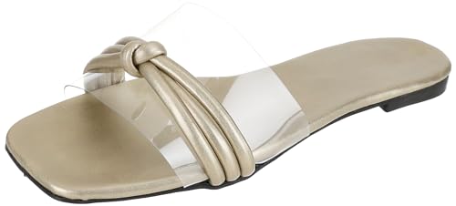 LKOER - شبشب مسطح شفاف من سول 2 سول بنعل مرن مريح بتصميم شريط رفيع، شفاف × أخضر، مقاس 37 EU