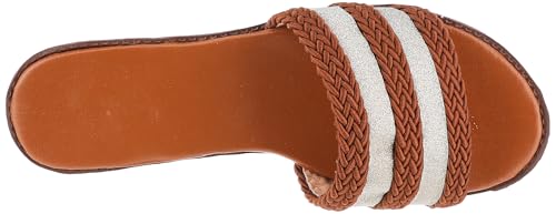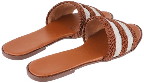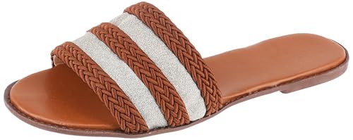 SOUL 2 SOLE - شبشب فلات سول 2 سول بتصميم مخطط بقماش خيش بشكل جميل فضي/ذهبي، لون هافان، مقاس 39 EU
