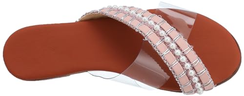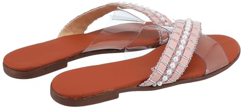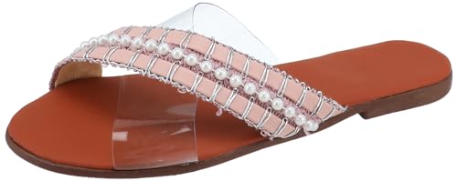 AUUXVA - شبشب بحزام متقاطع شفاف بتصميم مطرز جميل مع لؤلؤ من سول 2 سول، لون كشمير، مقاس 37