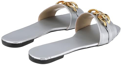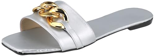 AUUXVA - شبشب سول 2 سول بحزام ماسي مزدوج رفيع بنمط متقاطع، لون ذهبي، مقاس 40