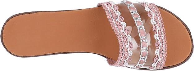 SOUL 2 SOLE - شبشب كاجوال مسطح من سول 2 من سول، بتصميم عصري شفاف برباط قطن ودانتيل بلون كشمير مزين بأحجار بألوان متطابقة، مقاس 40