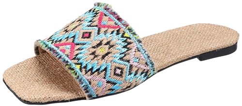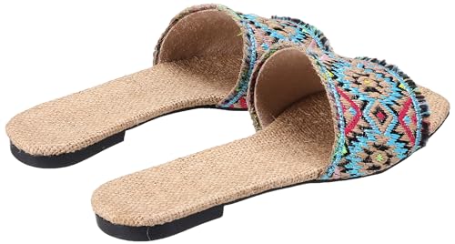 AUUXVA - شبشب مسطح لوسيد بنعل مسطح وأشرطة ملونة من سول 2 سول، لون أزرق ساطع، مقاس 38 EU