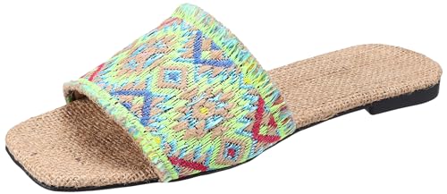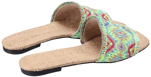 AUUXVA - شبشب لوسيد بنعل فلات وأشرطة ملونة من سول 2 سول، أخضر (برايت جرين)× ألوان، 38 EU