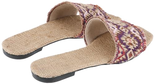 AUUXVA - شبشب مسطح لوسيد بنعل مسطح واشرطة ملونة من سول 2 سول، لون أرجواني ساطع، مقاس 38