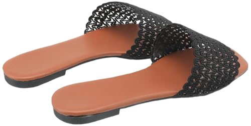 AUUXVA - شبشب مسطح علوي من الخيش القطني الرقيق بتصميم دانتيل خالص، لون بيج، مقاس 37 من سول 2 سول