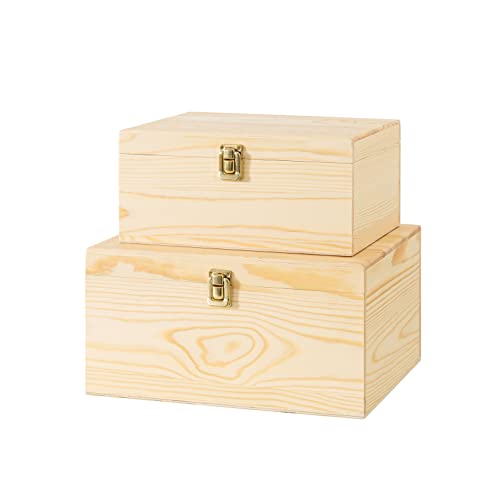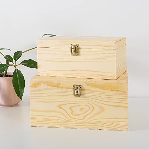 - مقاسان عمليان - صُنعت هذه الصناديق الرائعة باستخدام خشب الصنوبر النقي، وهي قوية ومتينة. مجموعة من قطعتين تحتوي على واحد من كل مقاس: مقاس متوسط 11 انش × 8 انش × 5 انش، كبير: 13 انش × 10 انش × 6.5 انش