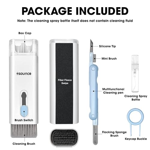 Sounce - مجموعة تنظيف الإلكترونيات متعددة الوظائف 7 في 1 مع فرشاة وقلم 3 في 1 لتنظيف ايربودز وسماعة الأذن والكمبيوتر المحمول والموبايل والشاشة ولوحة المفاتيح من سونس (رمادي)