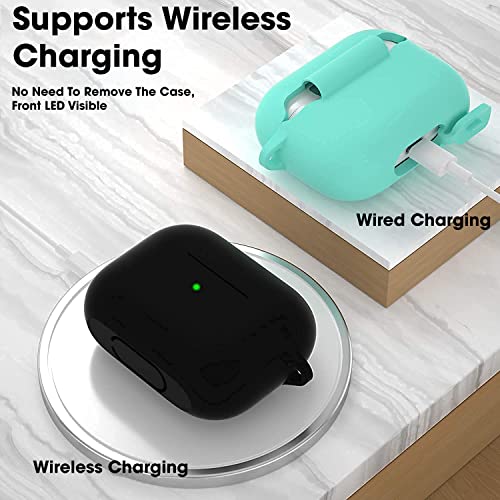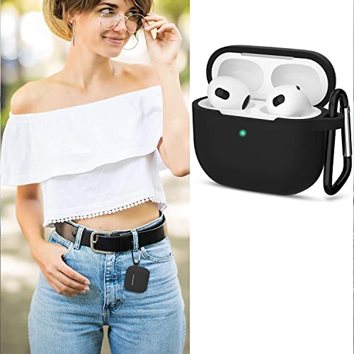 Sounce - جراب حماية لسماعات ايربودز 3 بحلقة لسلسلة المفاتيح من ساونس، جراب حماية من السيليكون لسماعات ايربودز الجيل الثالث (إصدار 2021)، مضاد للصدمات، يدعم الشحن اللاسلكي [الون أسود]