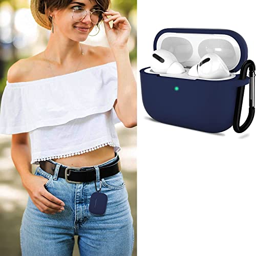 Sounce - جراب سيليكون محمول لسماعات ايربودز برو مع حلقة مفاتيح (يدعم الشحن اللاسلكي) متوافق مع ايربودز برو (2019) من ساونس، أزرق