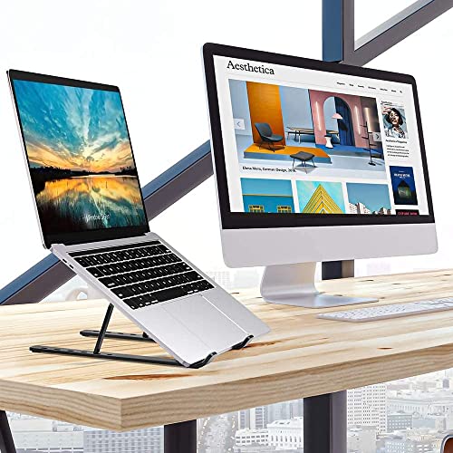 - 【قابل للتعديل وجيد التهوية】 الحامل قابل للتعديل إلى ارتفاعات وزوايا مختلفة، مما يسمح لك بالعثور على زاوية الرؤية المثالية والراحة لاحتياجاتك. بالإضافة إلى ذلك، فإن الحامل جيد التهوية لمنع ارتفاع درجة حرارة اللاب توب أثناء الاستخدام الطويل.