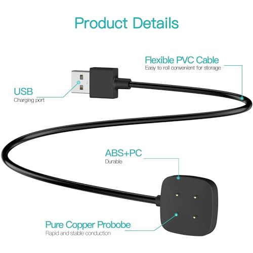 - 【تتوافق مع الاستخدامات المتعددة】: كابل شحن USB من ساونس مصمم للساعات الذكية فيتبيت فيرسا 3 وفيرسا 4 وسينس وسينس 2، مما يضمن تجربة شحن سلسة مع كابل USB بطول 1 متر.