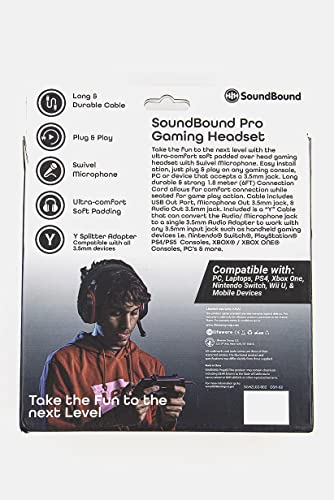 Generic - سماعة رأس التيميت للألعاب من ساوند باوند، لون أسود/ أحمر، بلوتوث، فوق الأذن