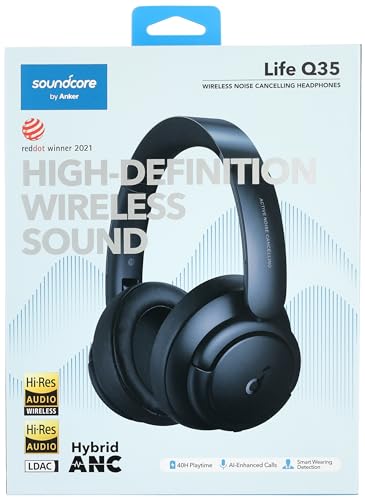 soundcore - سماعات رأس انكر لايف Q35 متعددة اوضاع من ساوند كور بخاصية الغاء ضوضاء نشطة، بلوتوث وتقنية صوت لاسلكية LDAC عالية دقة وقت تشغيل 40 ساعة، بملاءمة مريحة ومكالمات واضحة للاستخدام في العمل والسفر، أزرق