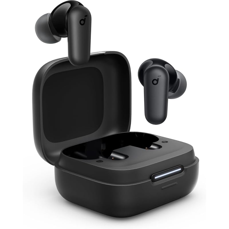 Anker - سماعات أذن ساوند كور R50i NC مع حافظة واقية مجانية، بلوتوث لاسلكي 5.3، وقت تشغيل 45 ساعة، تقليل الضوضاء بالذكاء الاصطناعي، مشغلات صوت جهوري كبيرة 10 ملم، 22 إعداد مسبق لمعادل الصوت IP54 من انكر أسود