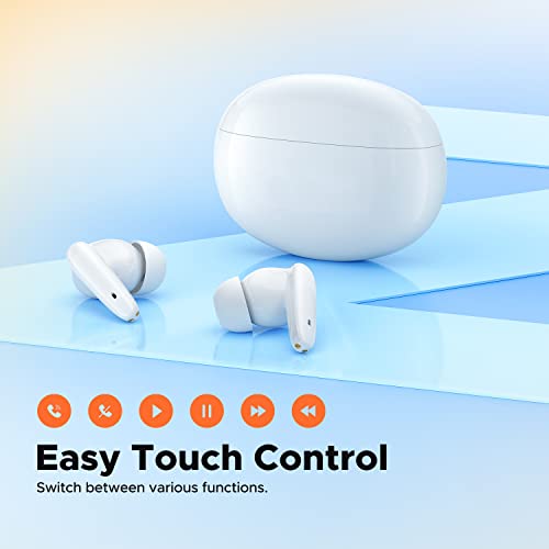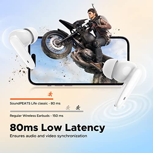 SoundPEATS - سماعات أذن لاسلكية خفيفة الوزن بخاصية إلغاء الضوضاء المحيط ومكالمات معززة بالذكاء الاصطناعي ومشغلات 10 ملم وصوت باس قوي وبلوتوث 5.2 وميكروفون وآمنة للرياضة ومدة انتظار طويلة من ساوند بيتس (أبيض)
