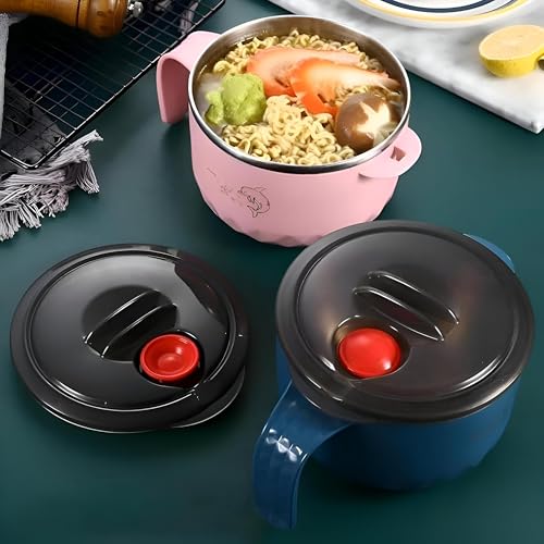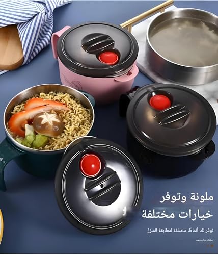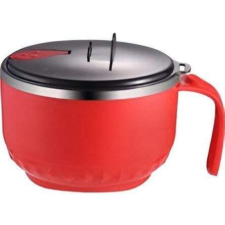 Generic - وعاء حساء - وعاء رامن متين قابل لاعادة الاستخدام مع غطاء، تصميم معزول من الستانلس ستيل، مقبض لسهولة الحمل، مثالي للحساء الساخن واليخنات، وعاء تقديم الطعام للاستخدام الداخلي والخارجي (لون احمر)