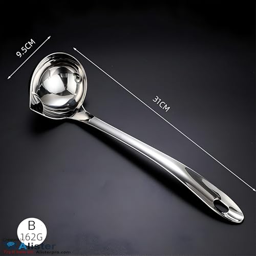 - باستخدام مبدأ فريد لفصل الزيت، يتيح هذا الملعقة للدهون أن تطفو على سطح الحساء. يشمل التصميم فتحة صغيرة تتيح مرور المرق أولاً، مما يؤدي إلى فصل الزيت عن السائل بشكل فعال. هذه الميزة مفيدة بشكل خاص لأولئك الذين يبحثون عن خيار صحي عند تقديم الحساء، حيث أنها تقلل من كمية الدهون المحتفظ بها في الطبق النهائي.