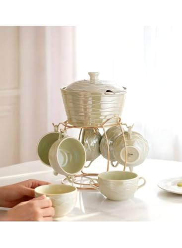 generic - طقم مجات شوربة + حلة بورسلين لامعة 7 قطع + حامل