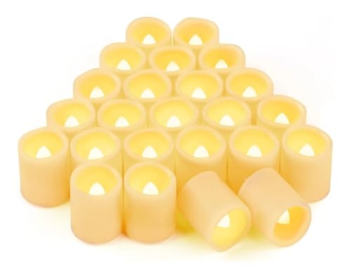 SOUQ KADO - شمعات ليد وامضة بدون لهب بإضاءة بيضاء، شموع تي لايت لحفلات الزفاف والطاولة والمهرجانات والفوانيس من سوق كادو، 24 قطعة