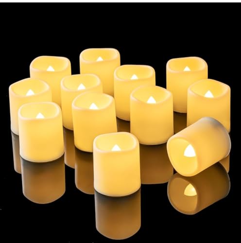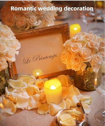 - شموع ليد بدون لهب، شمعات تي لايت وامضة تعمل بالبطارية تُصدر ضوء أبيض دافئ، شموع مزيفة ليد لزينة الزفاف والأعياد.