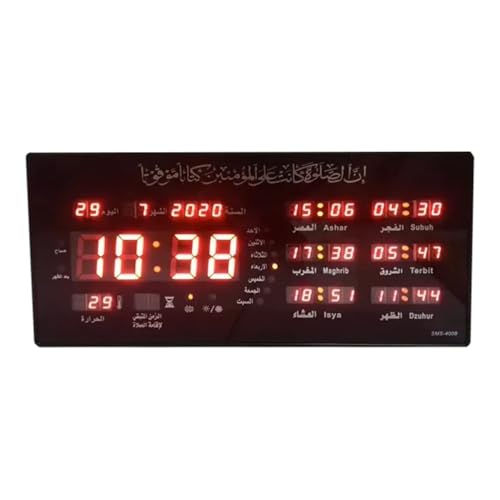 SOUQ KADO - ساعة رقمية لمواقيت الصلاة والأذان، عرض الوقت الإسلامي بالريموت ،من سوق كادو، مقاس 45في22سم يتم توصيلها بالكهرباء