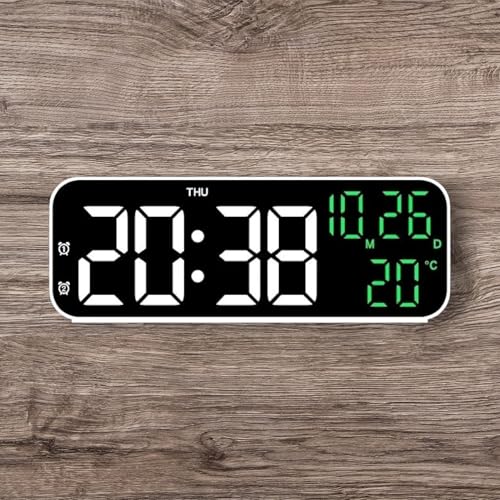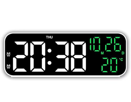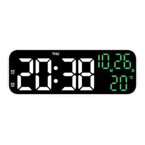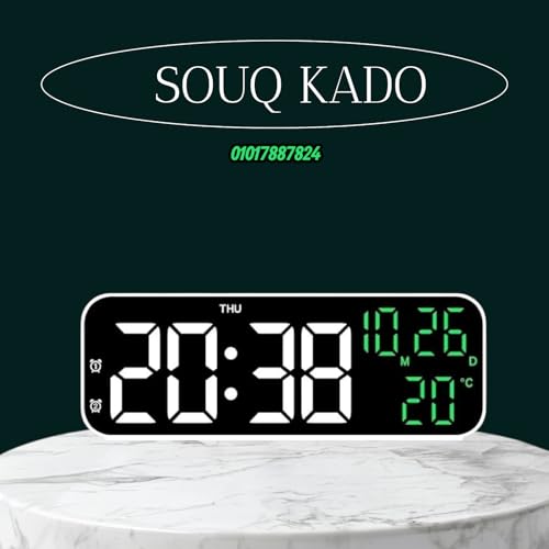 SOUQ KADO - ساعة رقمية LED للطاولة مع شاشة عرض كبيرة، مع عرض درجة الحرارة والتاريخ،من سوق كادو، تحكم صوتي وضبط بخاصية تاتش مثالية للمنزل والمكتب بمنفذ usb (ابيض في اخضر)