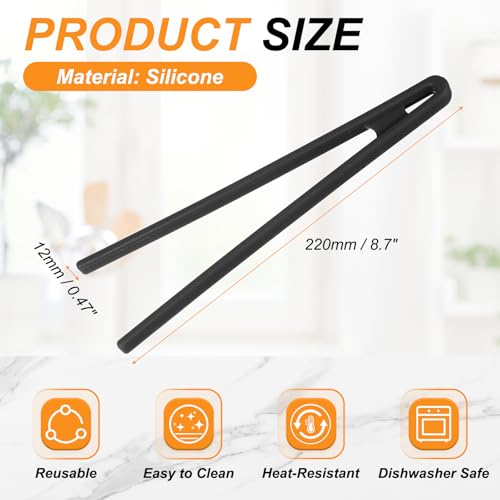 sourcing map - مساكة طعام للخبز مصنوعة من السيليكون، ملقط مطبخ مقاوم للحرارة، أداة مطبخ مناسبة للطبخ والمحمصة والسلطة والشواء واللحوم المملحة وشرائح اللحم المقلية من سورسينج ماب، مقاس 22 سم، لون أسود
