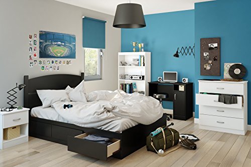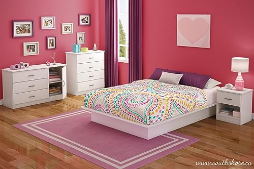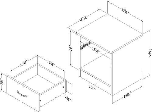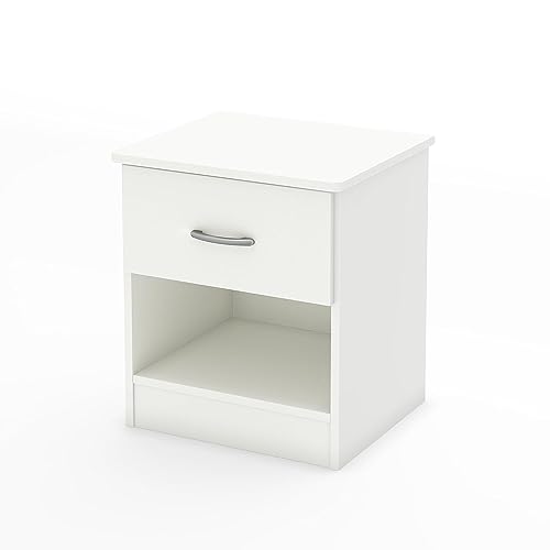 South Shore - طاولة سرير جانبية بمقبض معدني ودرج واحد من ساوث شور ليبرا، لون أبيض سادة، خشب