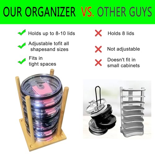 Sovipal - منظم أغطية أكواب من الخيزران قابل للتعديل، رف تخزين أغطية الأكواب، حامل غطاء الكوب وزجاجة المياه لدولاب المطبخ من سوفيبال