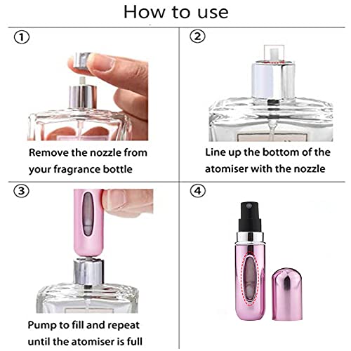 - سهلة الملء: يتمتع قاع زجاجة السبراي بتصميم صمام مبتكر، لتتمكن من إعادة ملئها بسهولة، مما يجعلها مميزة عن سبراي العطر التقليدي. ما عليك سوى وضع السبراي على مضخة أي زجاجة عطر لديك مع الاستمرار في الضغط حتى يكتمل ملئها دون أي تسرب.