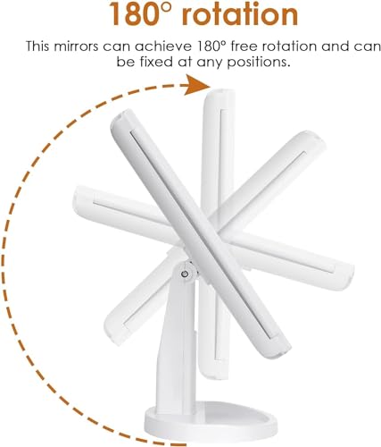 - دوران بدرجة قابلة للتعديل وتحكم باللمس: اضبطي المراية وفقًا لزاوية الرؤية المناسبة التي تريدها، مفتاح لمس سهل ومريح، يمكنك التحكم بسهولة في مراية المكياج بإضاءة ليد عند وضع المكياج.