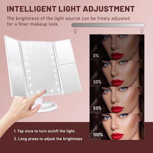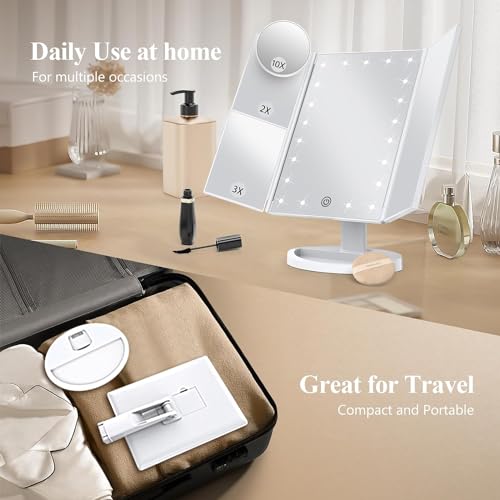 SOYTO - مراية مكياج بـ 22 مصباح إضاءة ليد عالية الدقة HD، ودرجة سطوع قابلة للتعديل، وشاشة تعمل باللمس، أوضع تكبير 1 و2 و3 و10 X، وشحن باستخدام منفذ USB أو بطاريات، دوران قابل للتعديل 180 درجة من سويتو