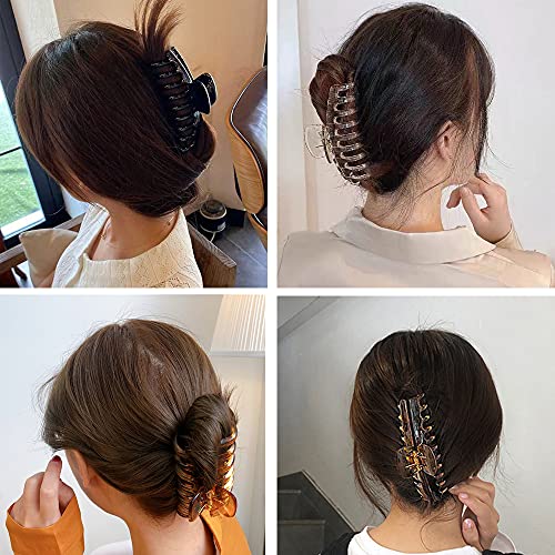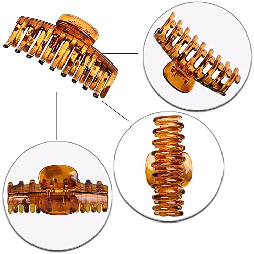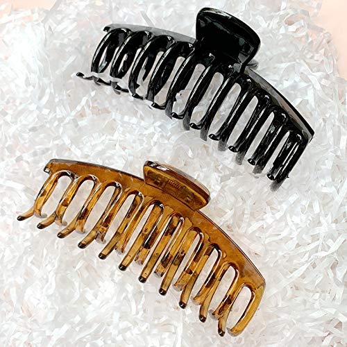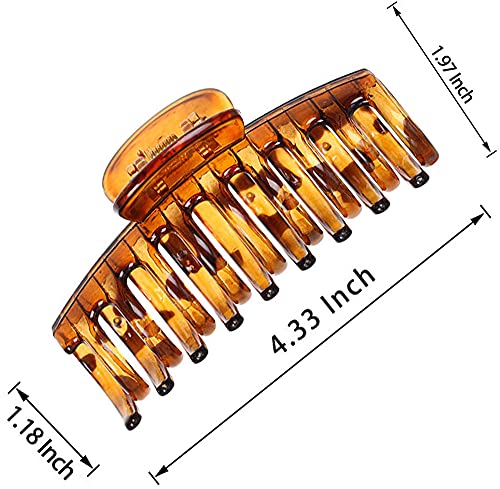 - مادة جيدة: مشابك الشعر الكبيرة مصنوعة من الراتنج، مادة متينة وقوية تجعلها جميلة وعملية وطولها 4.3 انش، سطح أملس وتصميم حواف مستديرة، لن تخدش فروة الرأس أو تتلف شعرك.