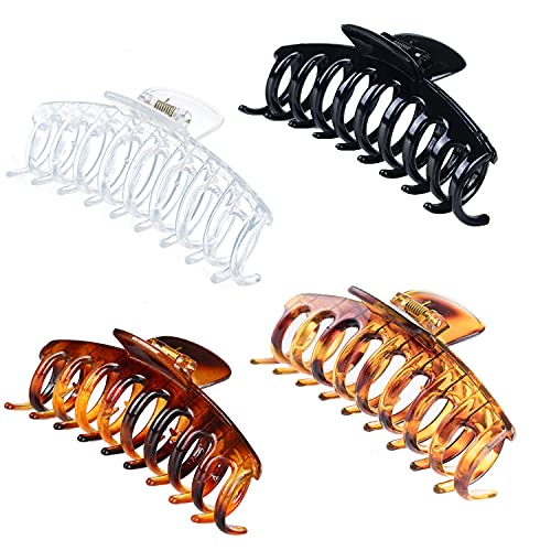 SOZZRC - مشابك شعر كبيرة من البلاستيك بقبضة قوية غير قابلة للانزلاق للشعر الكثيف والطويل للبنات من 4 قطع مقاس 4.3 بوصة