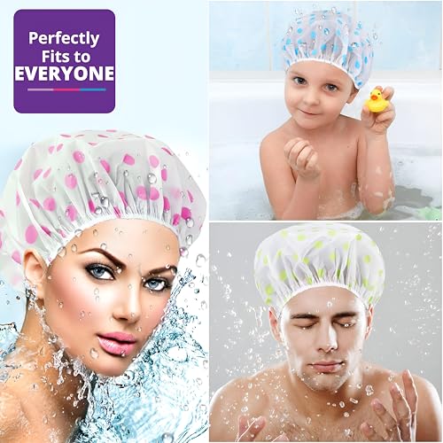Generic - قبعات استحمام والمنتجعات الصحية - مقاومة للماء وقابلة لاعادة الاستخدام للجنسين، عرض 30 سم، عبوة من 3 قطع للحماية من الشعر والماء