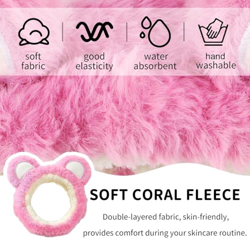 Generic - شريط راس سبا لغسل الوجه بتصميم دب لطيف للنساء، شريط راس منفوش للمكياج والعناية بالبشرة للبنات - بينك فاتح - شكل دب