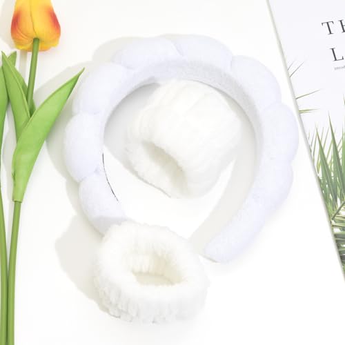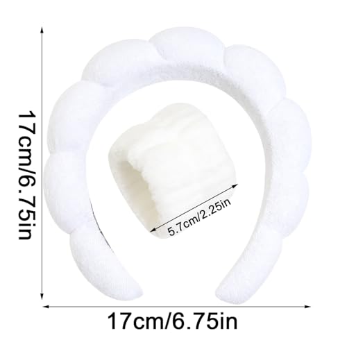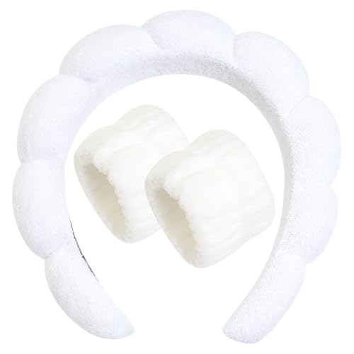Jeffan - شريط راس سبا لغسل الوجه والمعصم، شريط راس ناعم من قماش تيري للنساء والفتيات، غطاء راس مبطن ومنتفخ غير قابل للانزلاق، اكسسوار شعر سميك (ابيض، مقاس واحد)