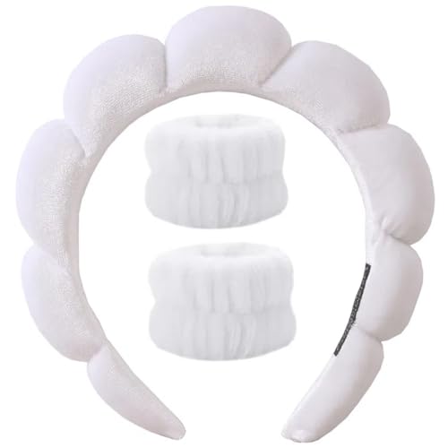 JMPTUFMT - رباط رأس لغسل الوجه والمكياج والعناية بالبشرة والاستحمام، اكسسوار للشعر بتصميم إسفنجي وقماش قطيفة للسبا (أبيض)