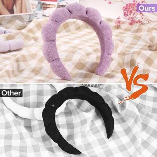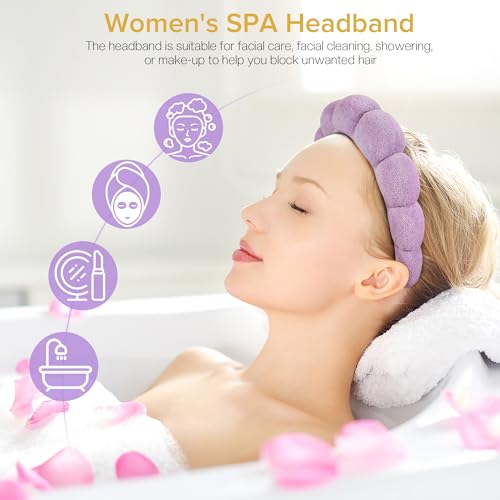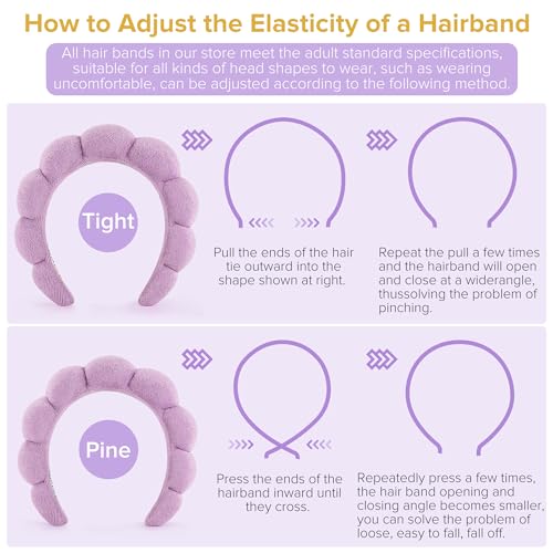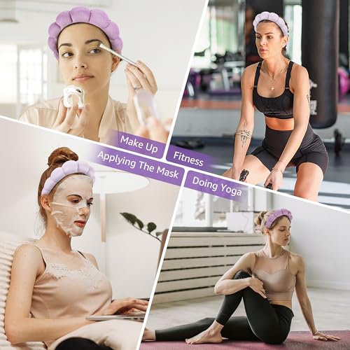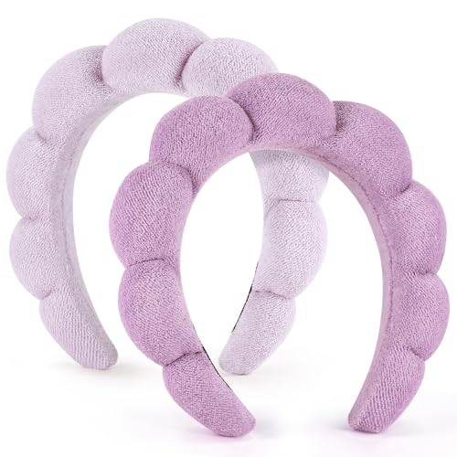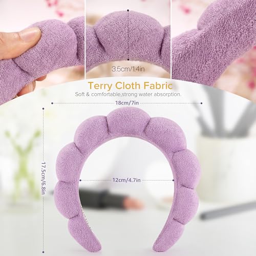 DiyJibb - أطواق رأس سبا للنساء، مجموعة من أطواق رأس منتفخة للمكياج، مجموعة من قطعتين من أطواق الشعر المصنوعة من قماش تيري لغسل الوجه، والعناية بالبشرة، وإزالة المكياج، وإكسسوارات الشعر (أرجواني، وأرجواني فاتح)