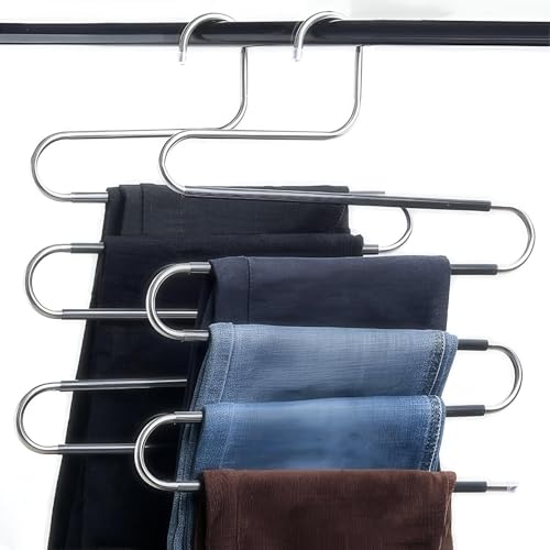 - شماعة ملابس متعددة الوظائف على شكل حرف S مع 5 طبقات، مثالية لتنظيم البناطيل والأوشحة والمناشف بكفاءة.