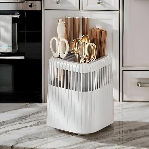 Generic - حامل موفر للمساحة - منظم سطح المطبخ بقاعدة دوارة، مصمم للتخزين الفعال للسكاكين والمقصات وعيدان تناول الطعام في شكل مربع صغير وعصري.