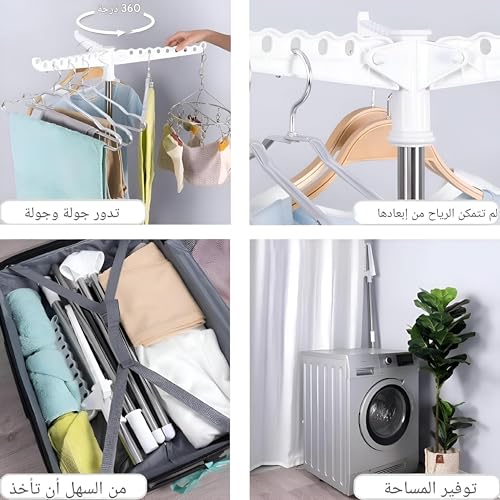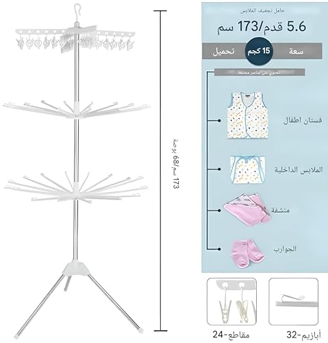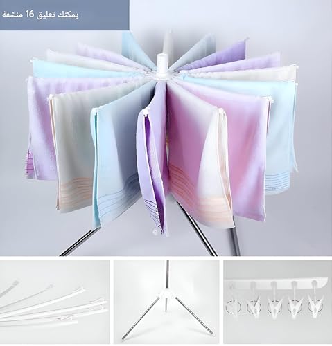 • شماعة ملابس محمولة - استمتع براحة رف التجفيف القابل للطي والذي يناسب تمامًا أي ركن من منزلك، مما يجعله حلاً مثاليًا لمساحات المعيشة الصغيرة أو الرحلات العائلية.