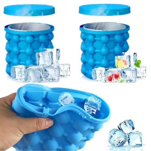 Generic - دلو صانع مكعبات الثلج الموفر للمساحة وحامل قالب السيليكون 2 في 1 لتحضير عصير السموثي، سهل الحمل، رائع لتجميد الويسكي والكوكتيلات والمشروبات المنعشة.