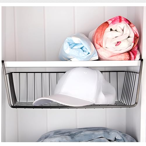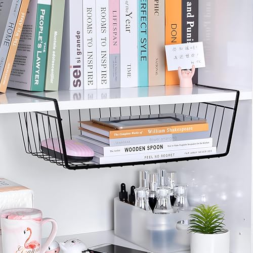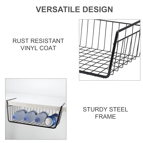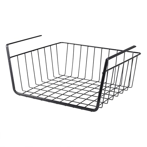 Generic - سلة تخزين للمطبخ موفرة للمساحة - سلة سلكية معلقة تحت الرفوف، تحمل الأواني والمقالي والتوابل، مقاومة للصدأ وسهلة التنظيف، مقاس 12 × 24 × 14 سم، لون أسود