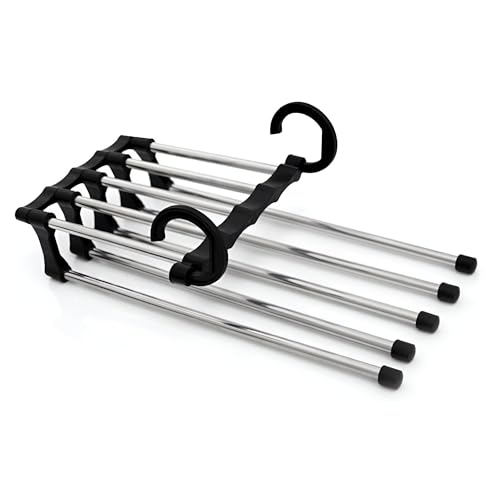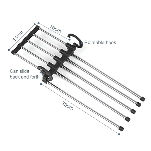 Generic - شماعة بنطلونات موفرة للمساحة - رف من الفولاذ المقاوم للصدأ من 5 مستويات مع خطاف دوار، بألوان عصرية من الأسود والفضي، للحصول على خزائن ملابس خالية من الفوضى، طول 33 سم