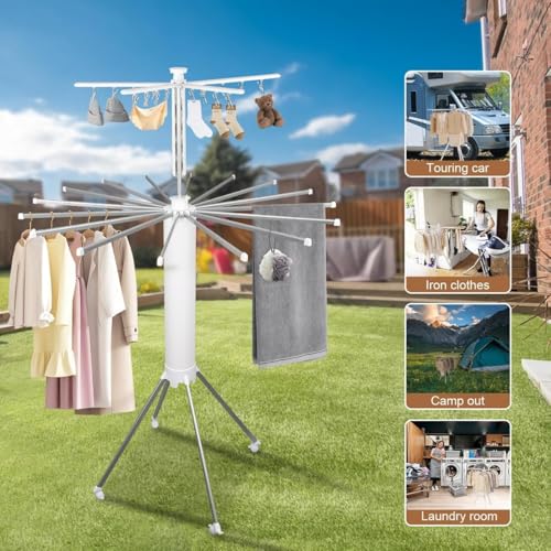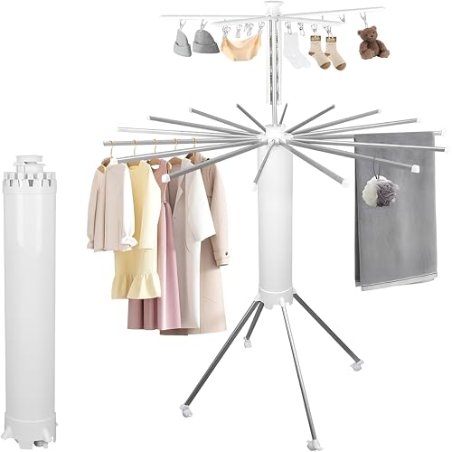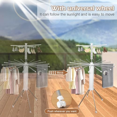 3M-Art - حامل تجفيف الملابس بتصميم دوار 360 درجة - رف غسيل قابل للطي موفر للمساحة - حامل محمول شديد التحمل - مثالي لتجفيف الملابس وملاءات السرير والمناشف - عجلات متحركة وثابتة