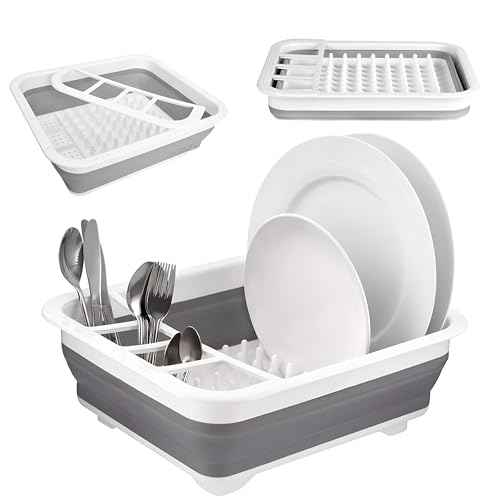 - يوفر رف الأطباق القابل للطي هذا حجمًا مثاليًا للتخزين المدمج وسعة غسل الصحون الواسعة. توفر أبعادها غير المطوية حوالي 36 × 31 × 13 سم (14.5 × 12.5 × 5.1 انش) مساحة كافية لتصريف الأطباق والأواني، بينما يسمح ارتفاعها المطوي الذي يبلغ 5 سم (2 انش) فقط بالتخزين السري تحت الحوض أو في الخزانة. هذا المزيج من الحجم وسهولة الحمل يجعله مثاليًا للمطابخ الصغيرة والمركبات الترفيهية ورحلات التخييم والمزيد.