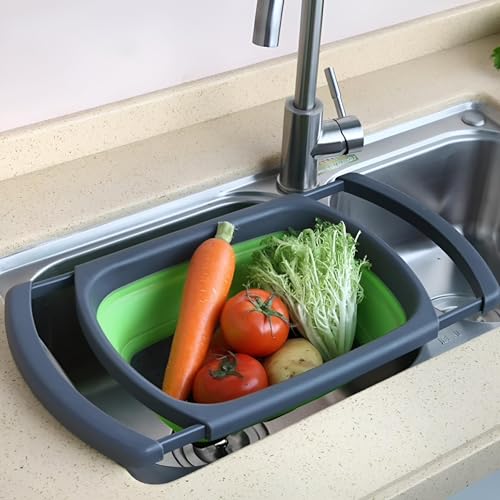 Generic - مصفاة حوض سيليكون موفرة للمساحة: تتميز بتصميم قابل للطي والتمدد وسلة كبيرة الحجم متعددة الألوان لجمع نفايات الطعام بكفاءة.
